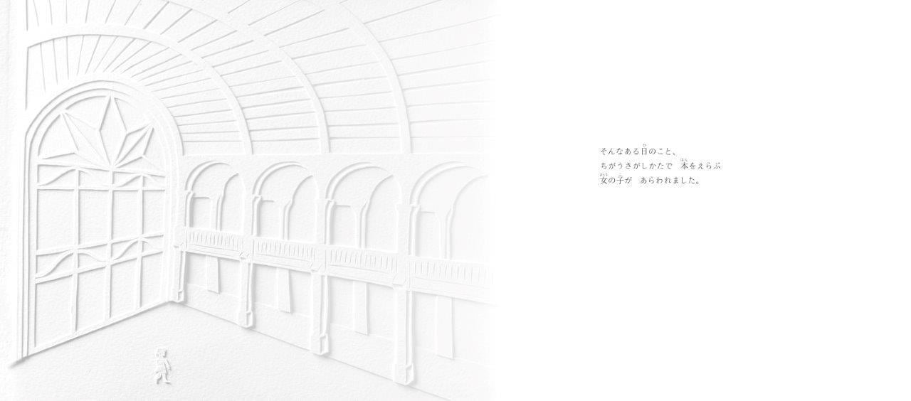 図書館のかたすみでたたずむ一冊の本。他の本とはちがって、絵も字もありません。