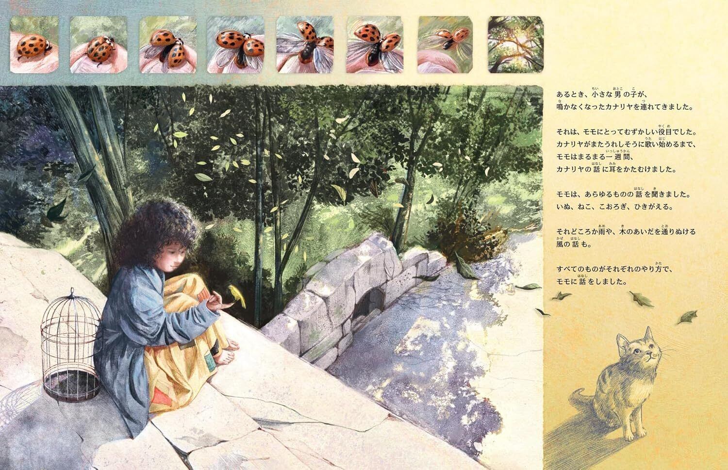 モモに話を聞いてもらうと、自分のしたいことがはっきりとわかったり、間違いに気づいたりします。美しいイラストが、エンデの深い哲学的テーマを子どもから大人まで楽しめる形で伝えてくれます。
