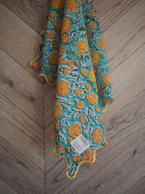 【別注】ブロックプリント ウェーブ刺繍ハンカチ marigold【momo×SKOBURU】