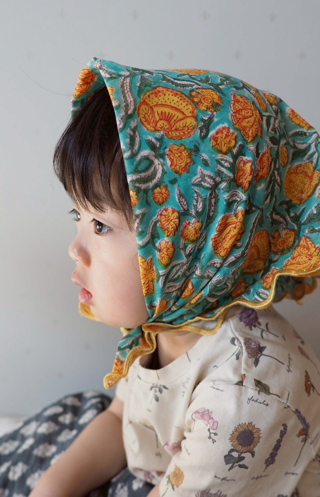 その他にもベビーのスタイ感覚で首に巻いたり、