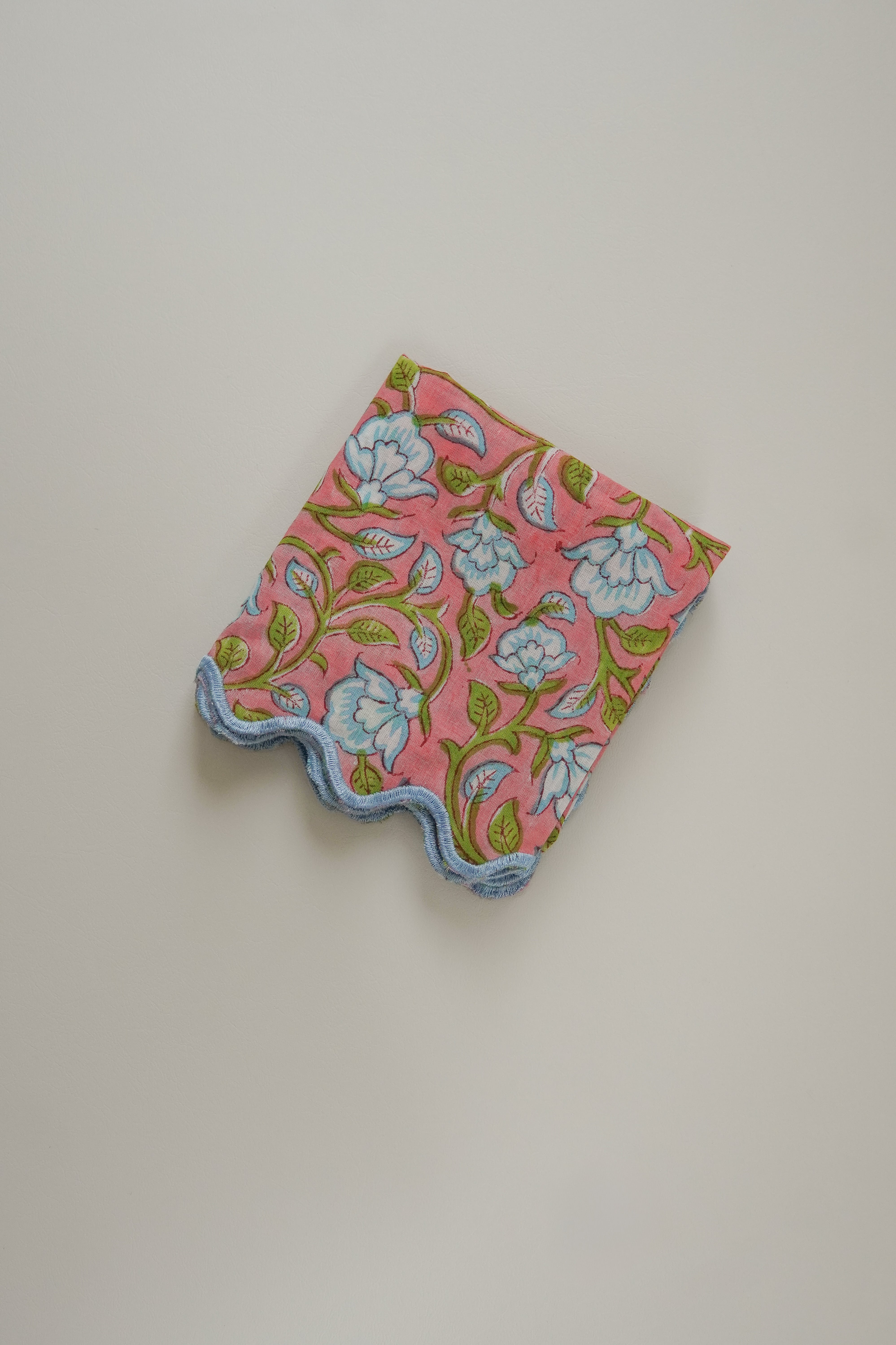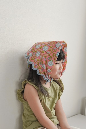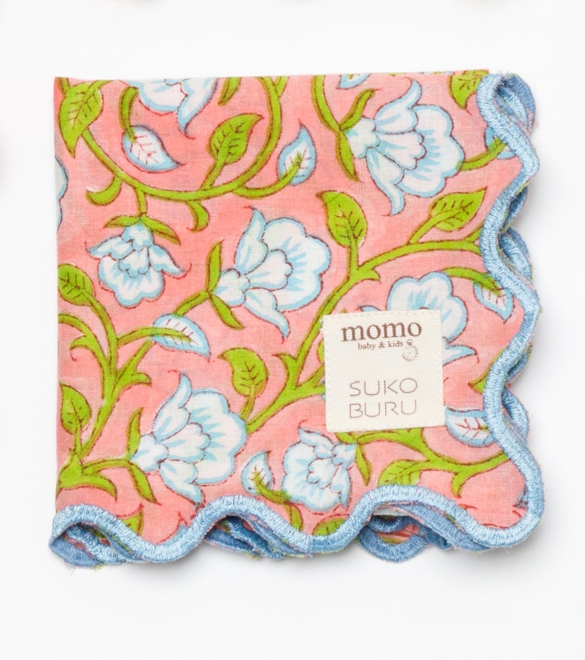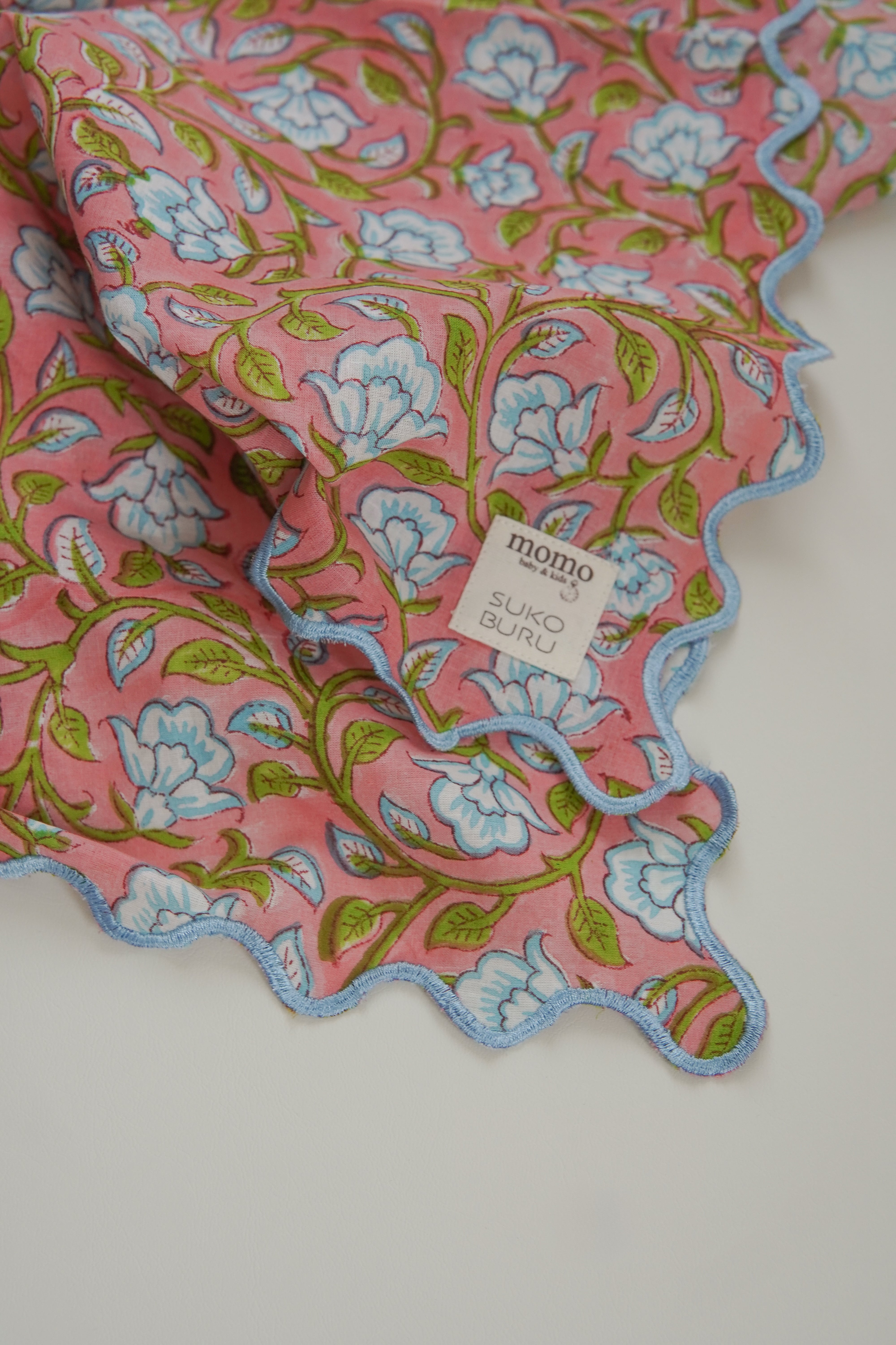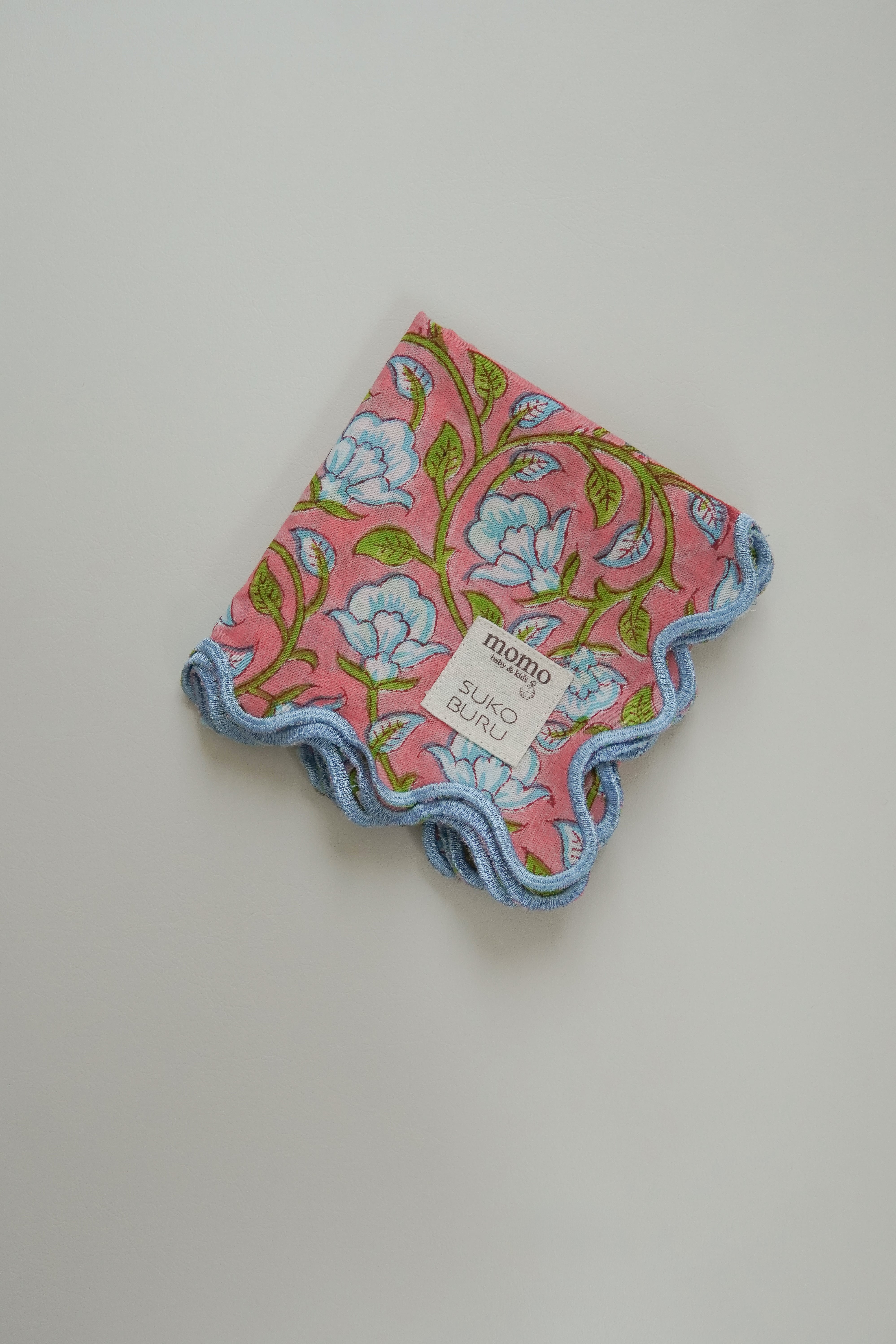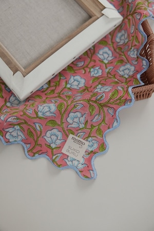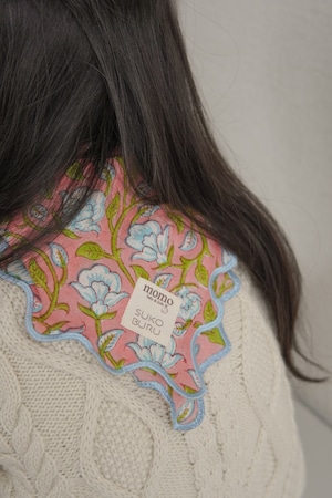【別注】ブロックプリント ウェーブ刺繍ハンカチ clematis【momo×SKOBURU】