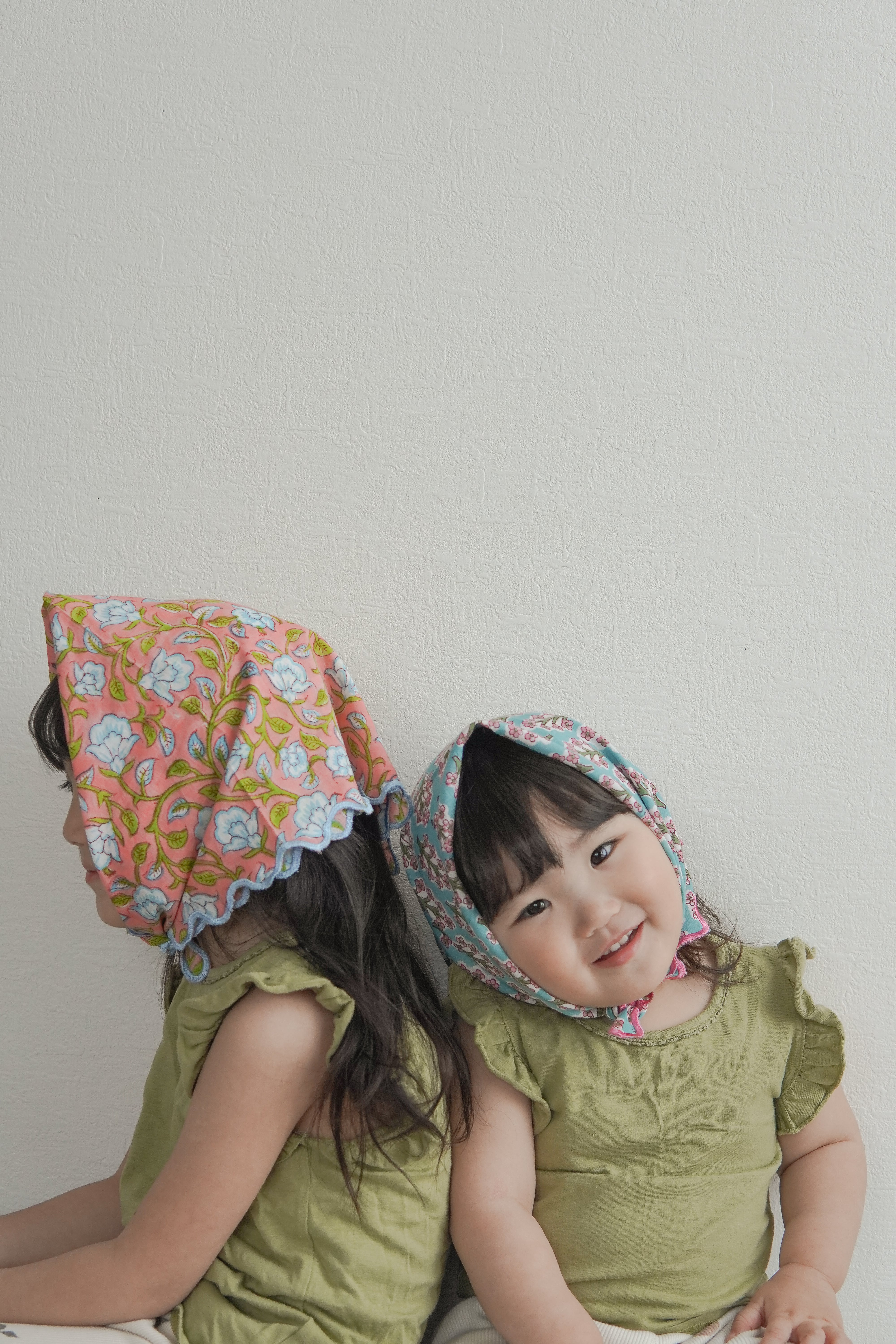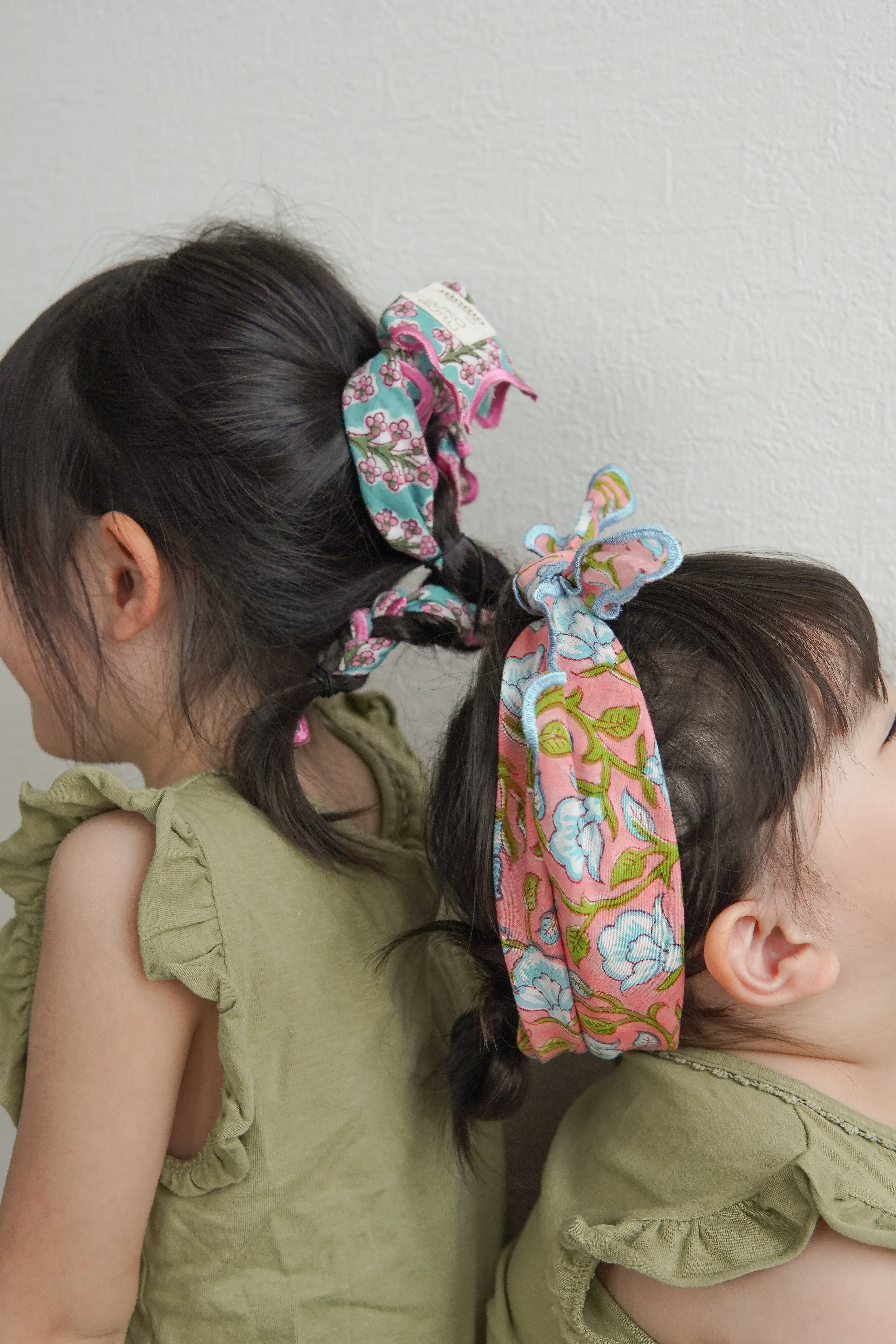 ヘアアクセサリーにおススメなブロックプリントハンカチ!
