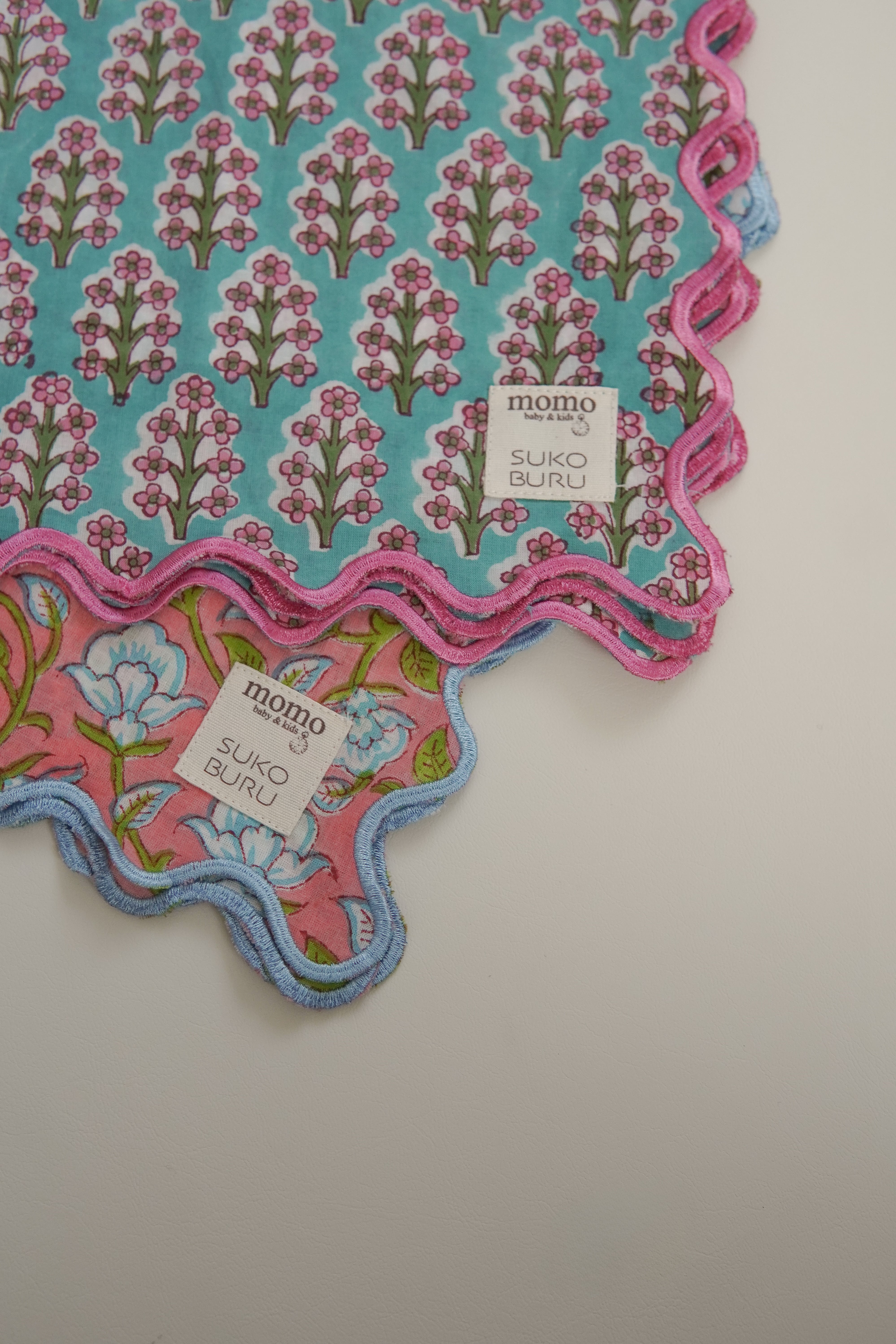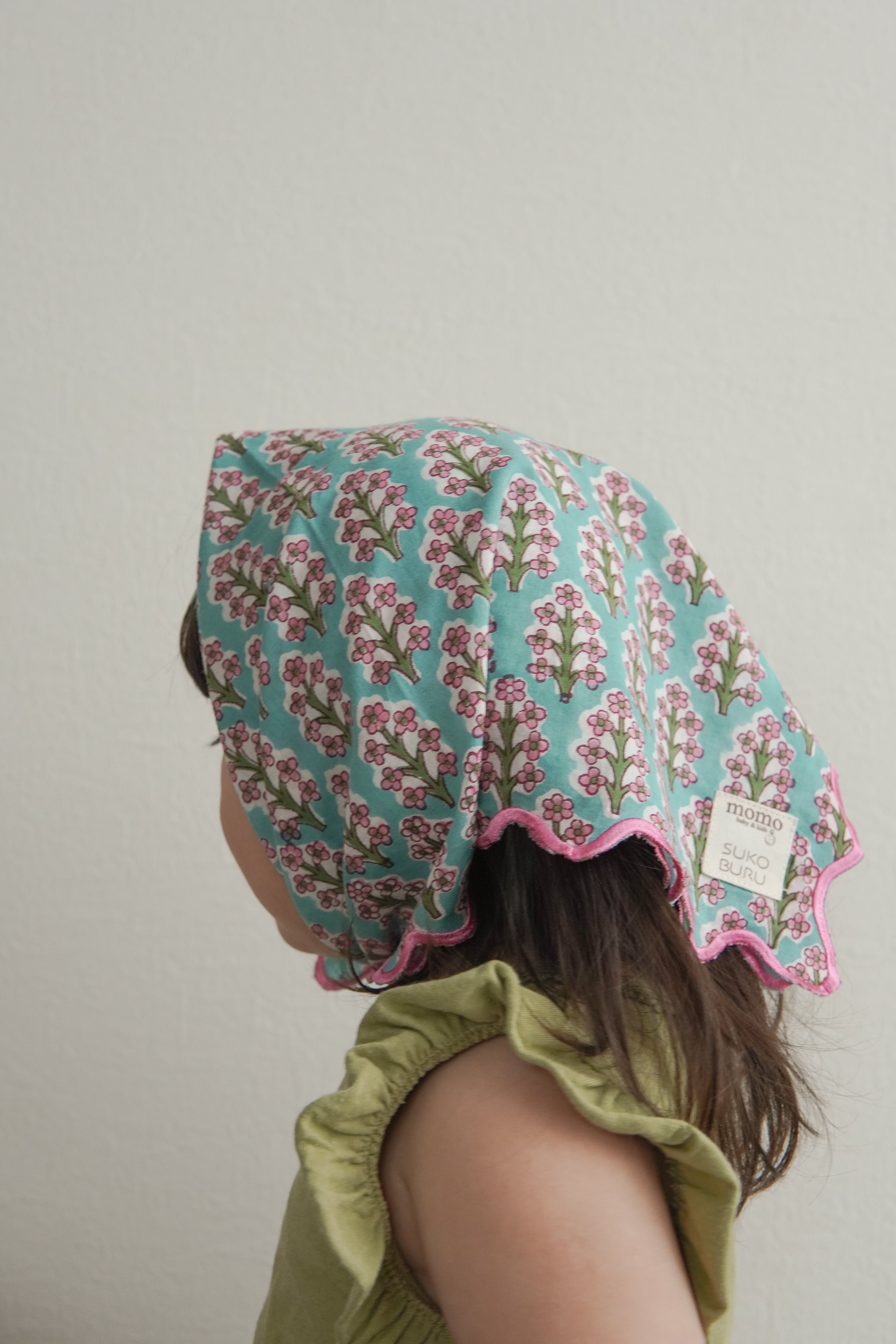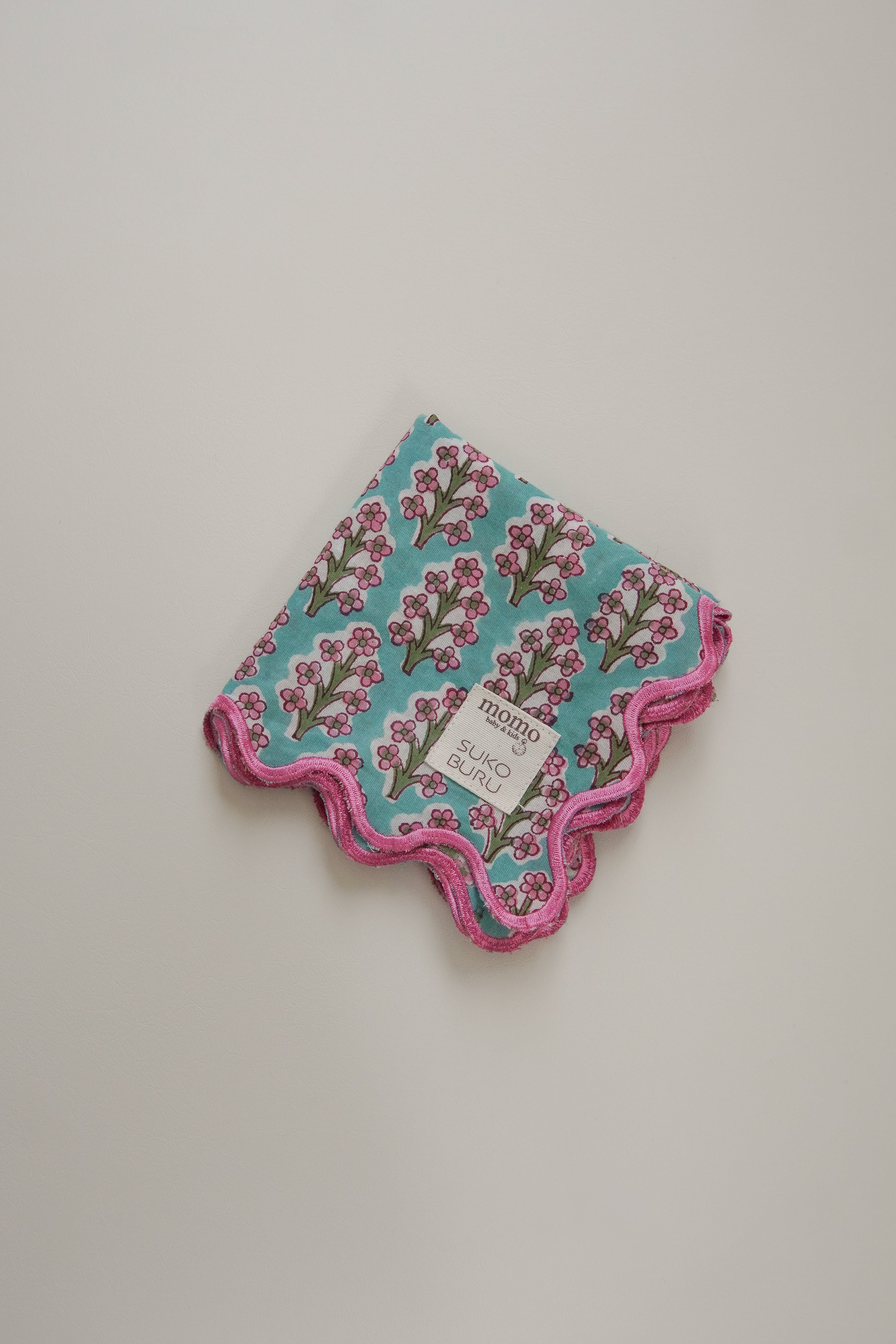 【別注】ブロックプリント ウェーブ刺繍ハンカチ haruzion【momo×SKOBURU】