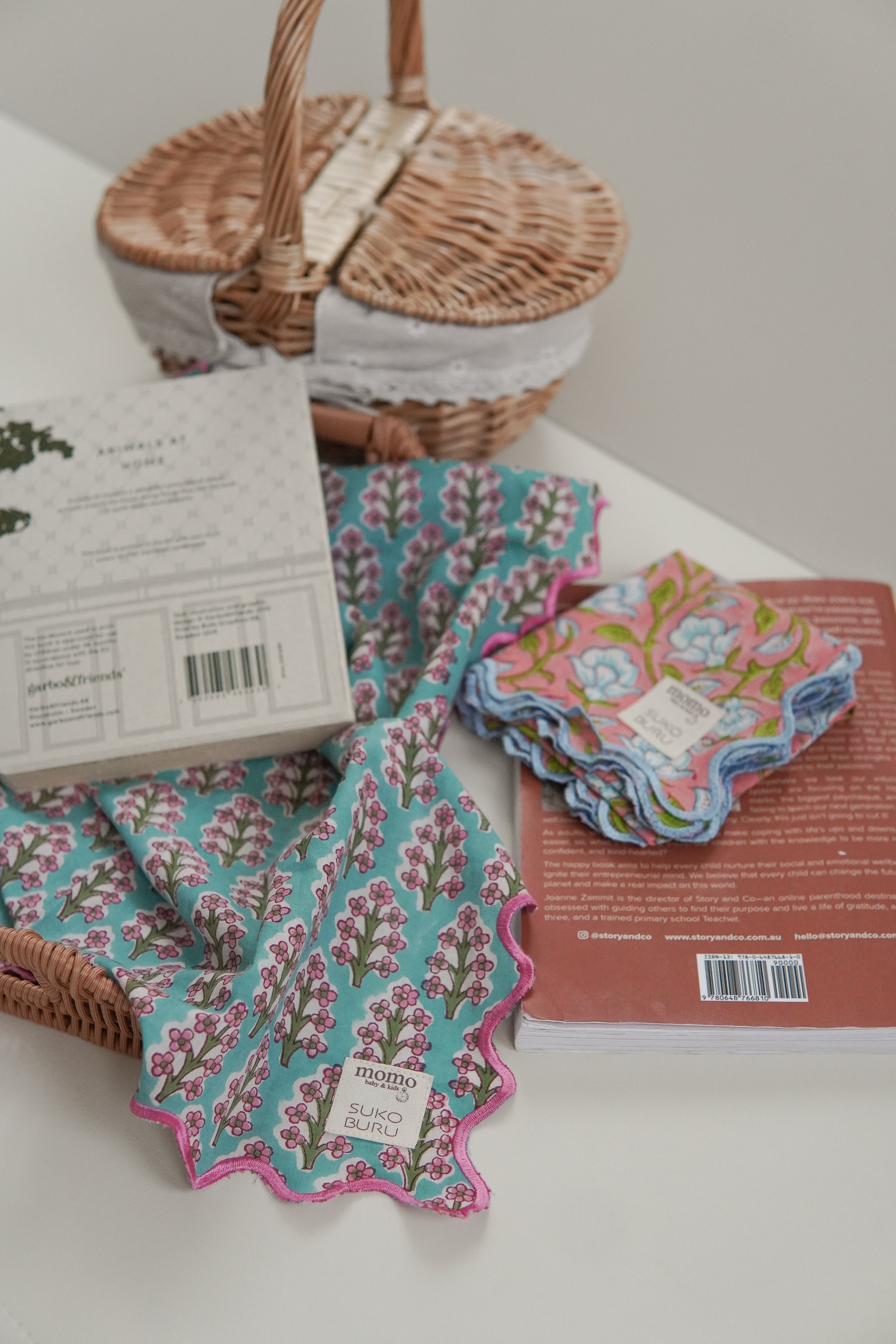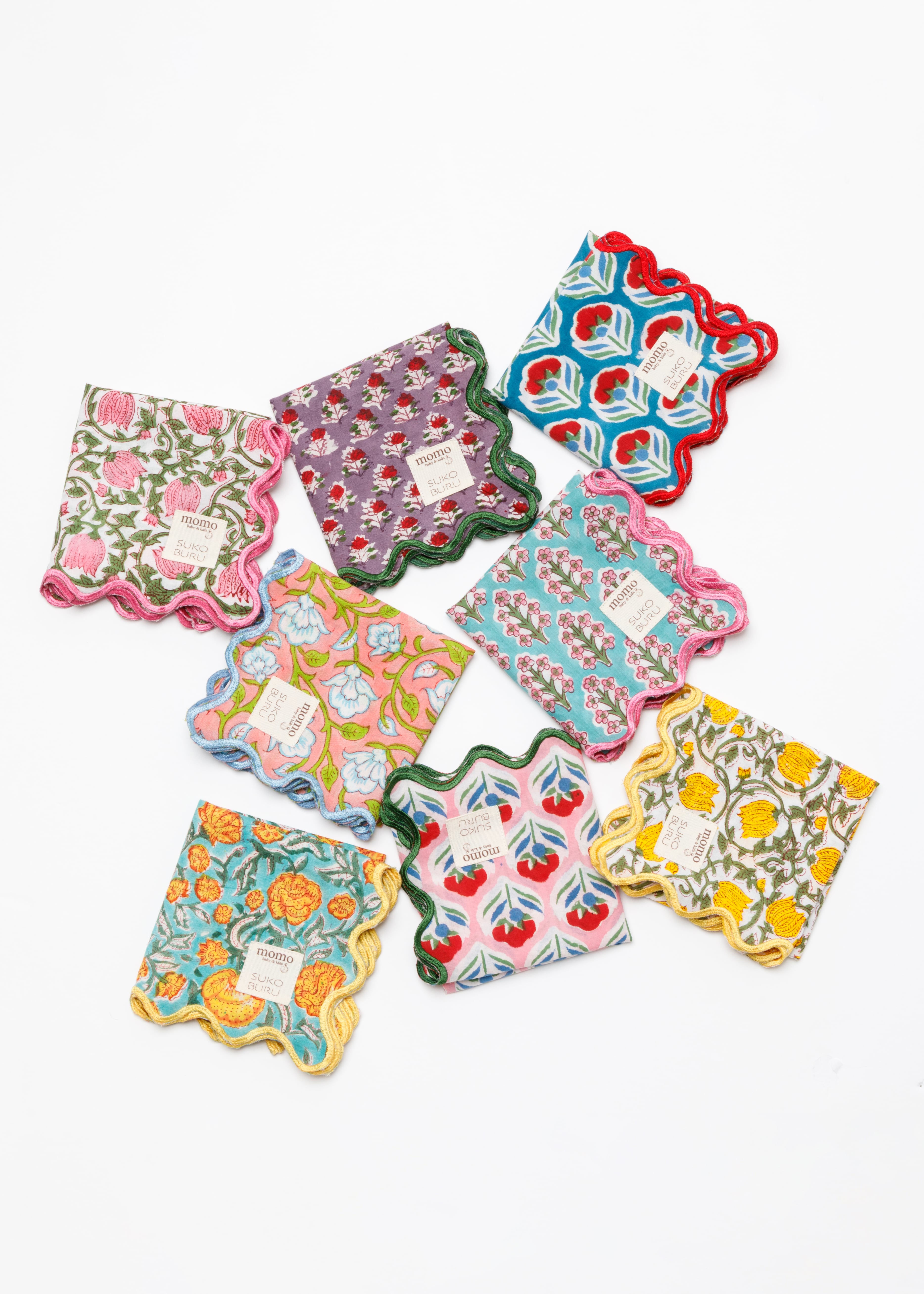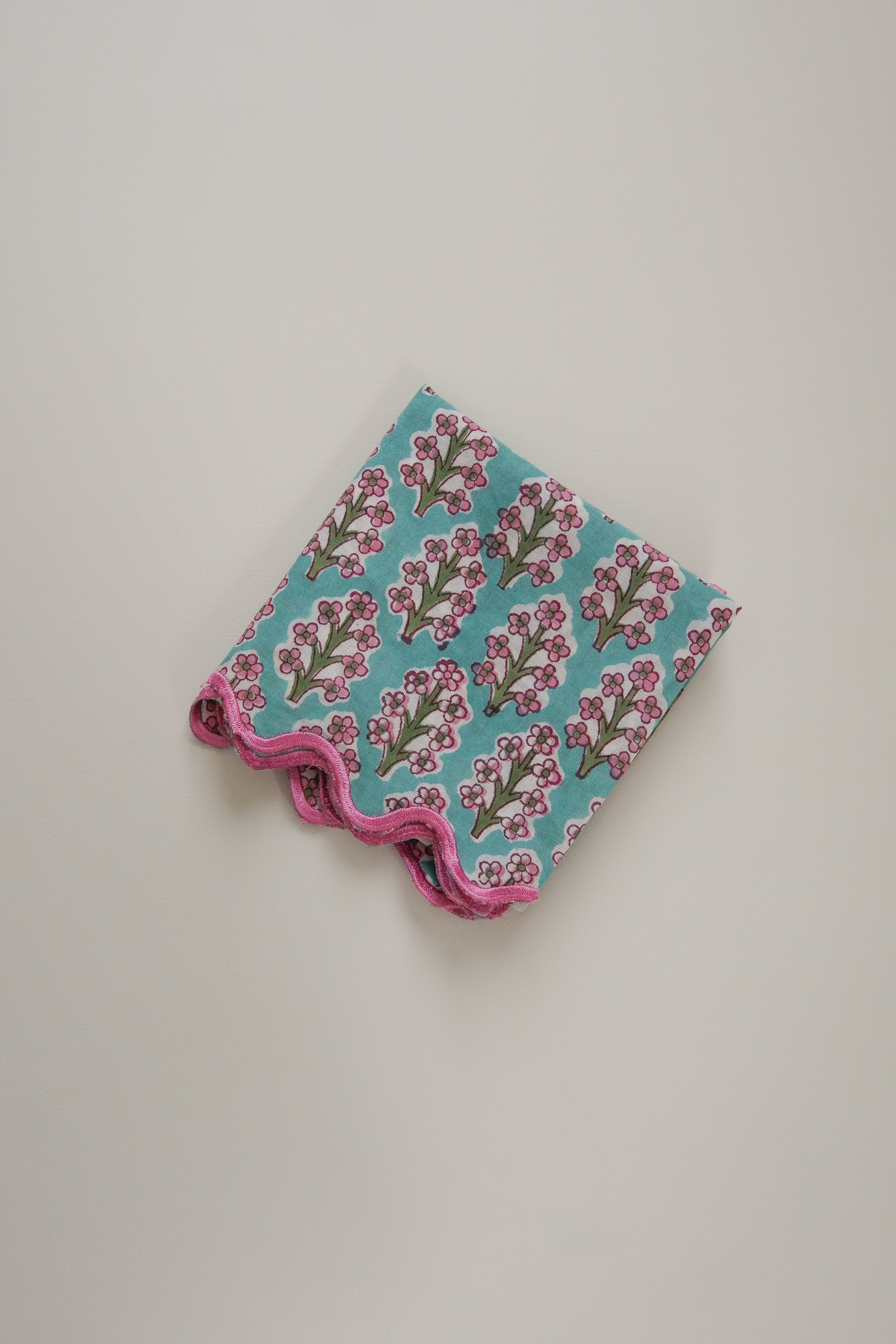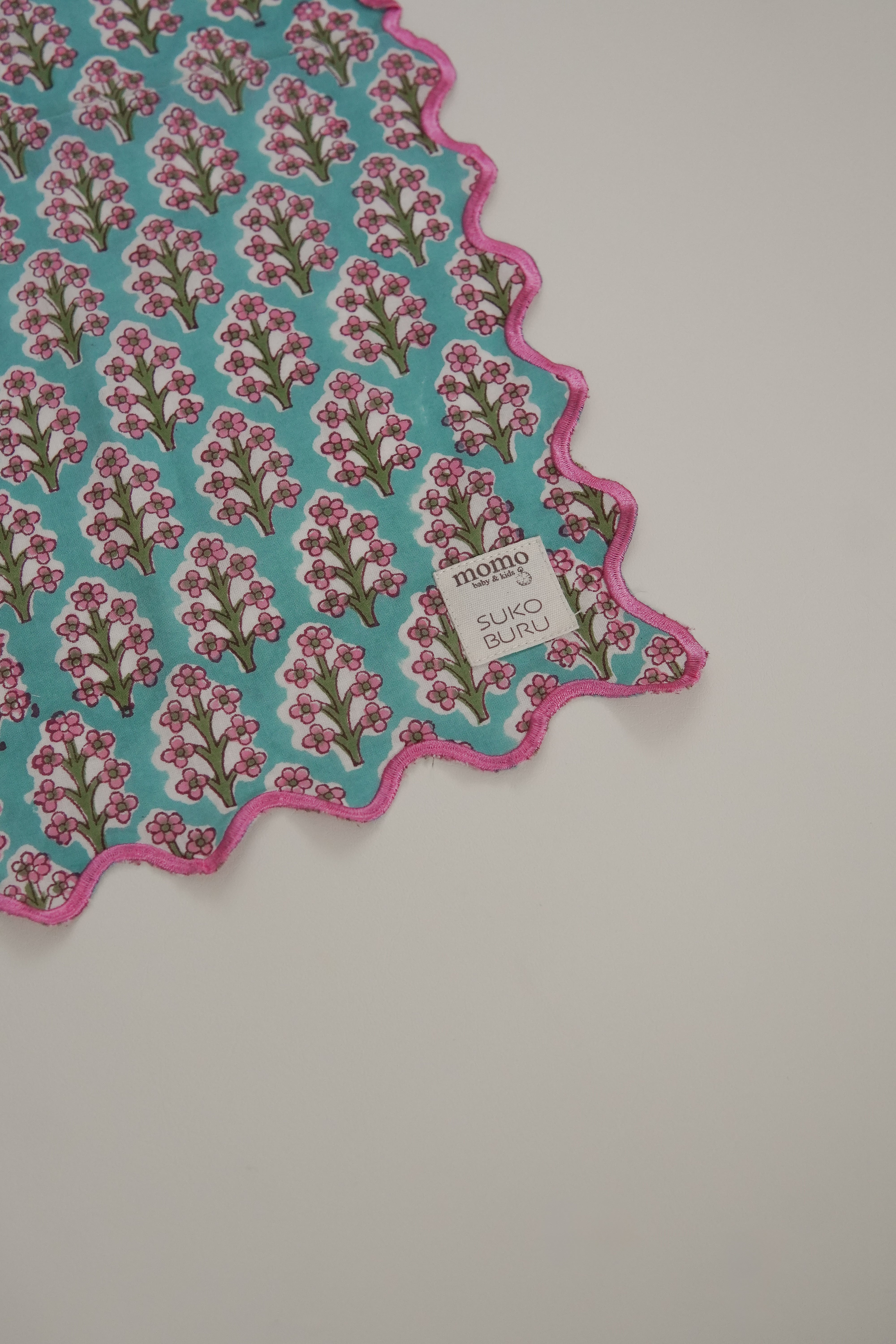 【別注】ブロックプリント ウェーブ刺繍ハンカチ haruzion【momo×SKOBURU】