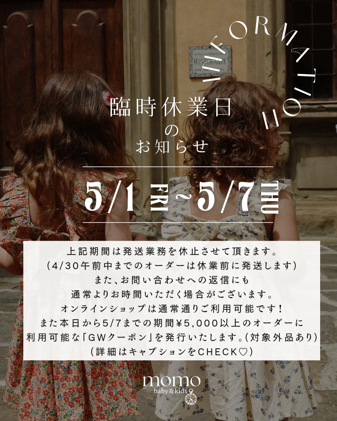 GW休業日&クーポンのお知らせ