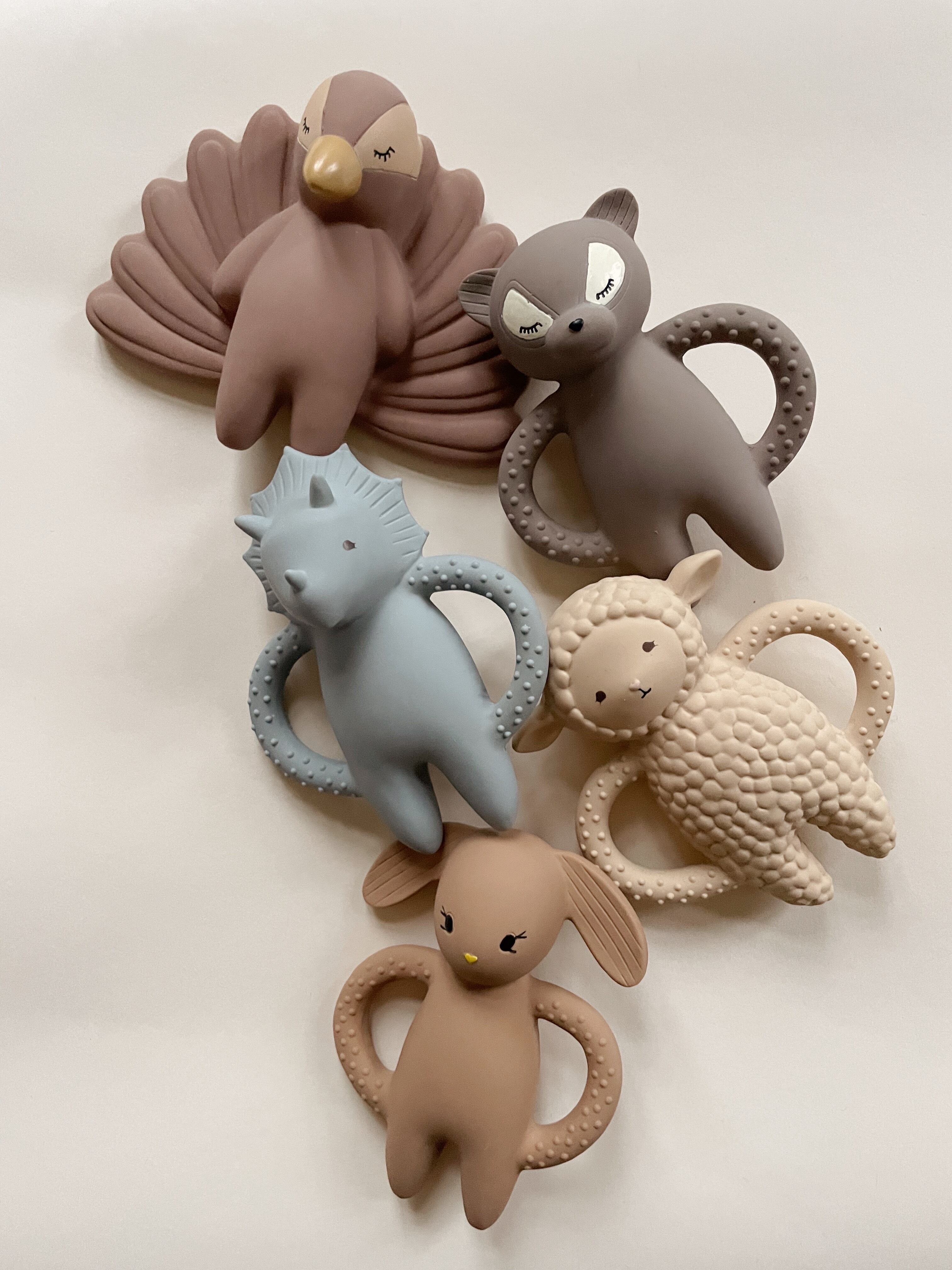 可愛い動物の姿をした100%天然ゴムで作られたベビートイ。