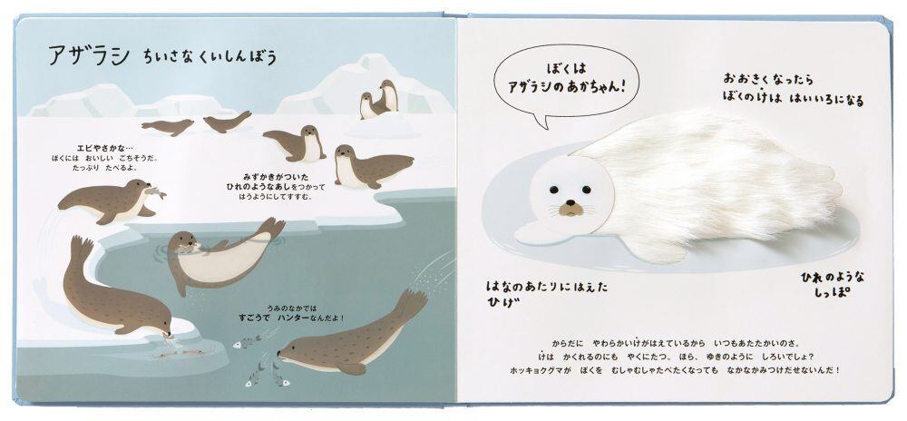 大好評、さわれる絵本の新装改訂版!寒い国にくらす動物たちの生態が楽しく学べます